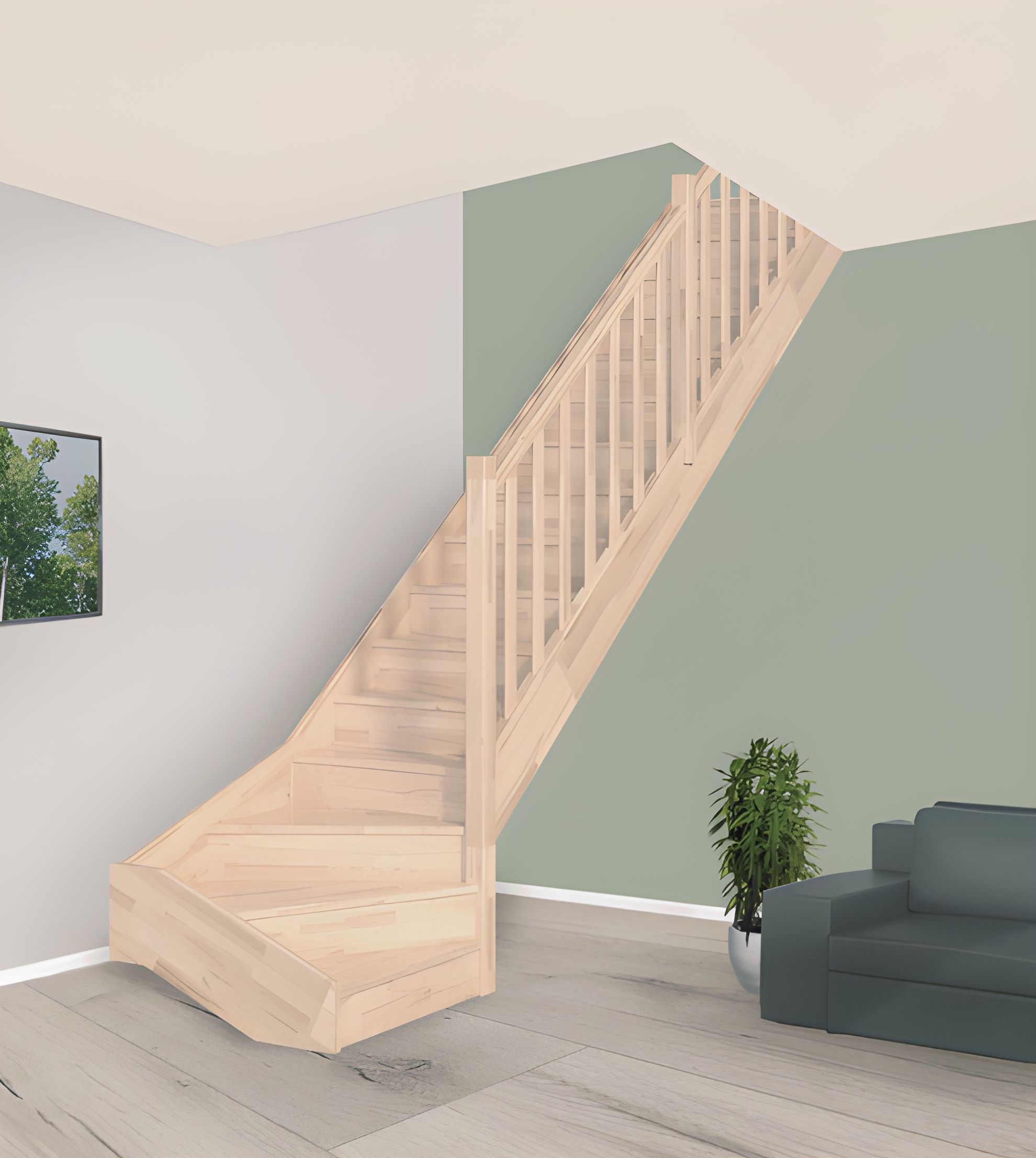 Afhankelijk van uw smaak en voorkeur hebben wij een groot assortiment kwartslagtrappen, zoals een onderkwart, bovenkwart en zelfs trappen met een middenkwart of dubbele kwart. De kwartslagtrappen uit ons ECHO-assortiment zijn leverbaar in vuren, beuken en eikenhout, zodat u altijd een trap vindt die naadloos aansluit op uw interieur.