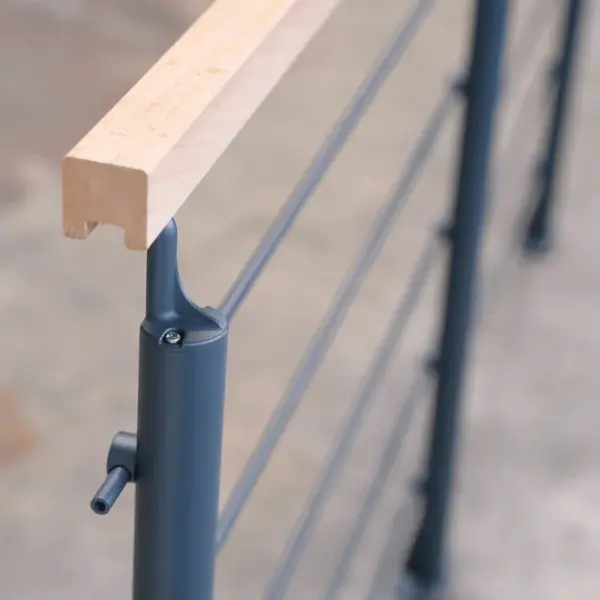 Deze aluminium balustrade is ontworpen en geproduceerd in Europa en heeft een strak design en verfraait uw binnen- en buitenruimtes. Met zijn eigentijdse stijl en zorgvuldige afwerking past hij perfect op tussenverdiepingen, terrassen, balkons of moderne trappen en biedt hij een esthetische en veilige oplossing.