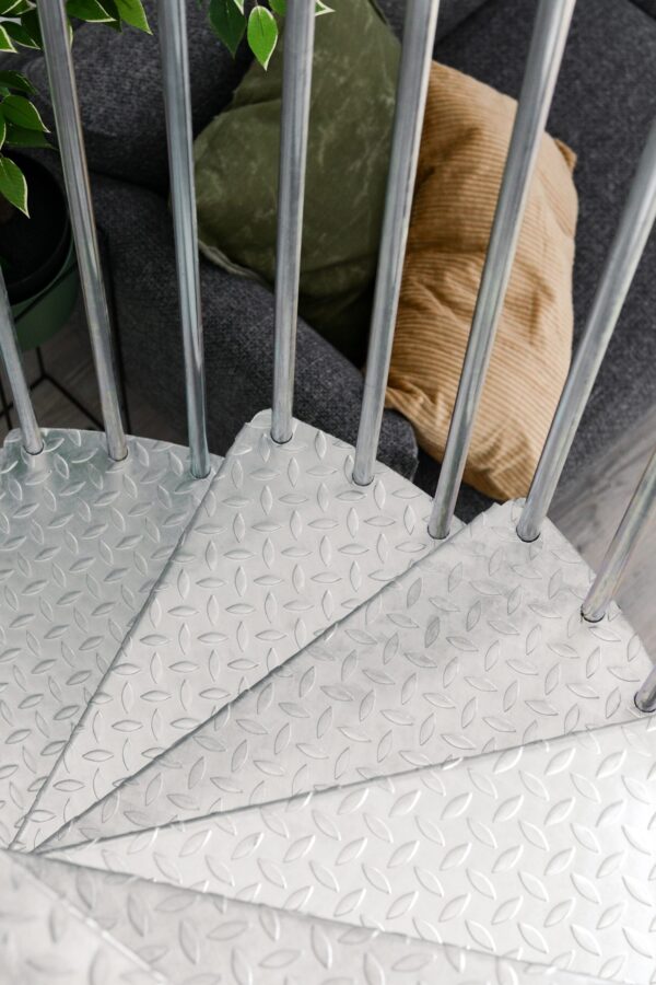 De gegalvaniseerde wenteltrap biedt gemakkelijke toegang tot terrassen, balkons of verhoogde toegangsdeuren in buitenruimtes. Dit model is ook ideaal als noodtrap. De trap is niet alleen praktisch, maar ook een visueel hoogtepunt. Zo kan hij bijvoorbeeld ook binnen worden gebruikt voor een unieke en moderne industriële look.