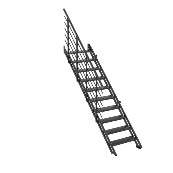 Metalen buitentrap trap ZINC – Rechte metalen buitentrap – 71 cm breed – Inclusief leuning