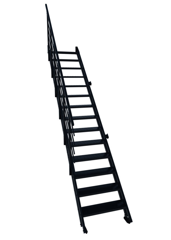 Een ander voordeel is het eenvoudige hoogteverstellingssysteem: door de hellingshoek te veranderen, kan de trap flexibel worden aangepast aan verschillende situaties. De trap is verkrijgbaar in vier maten met 6, 10, 12 of 14 treden en is geschikt voor een maximale vloerhoogte van 340 cm.