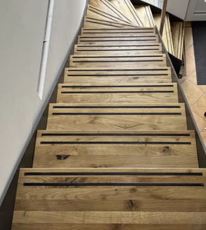 Met dit zwarte infreesprofiel, ook wel trapprofiel genoemd, kunt u uw traptreden veiliger maken. U kunt kiezen om 1 antislip strip te plaatsen of 2. De infrees maat van dit profiel is 7 mm. Na plaatsing zal het profiel ongeveer 1 mm op het tredenvlak liggen voor een optimaal loopcomfort en veiligheid.