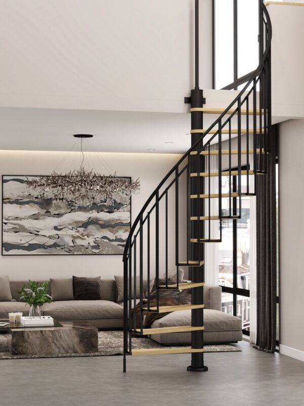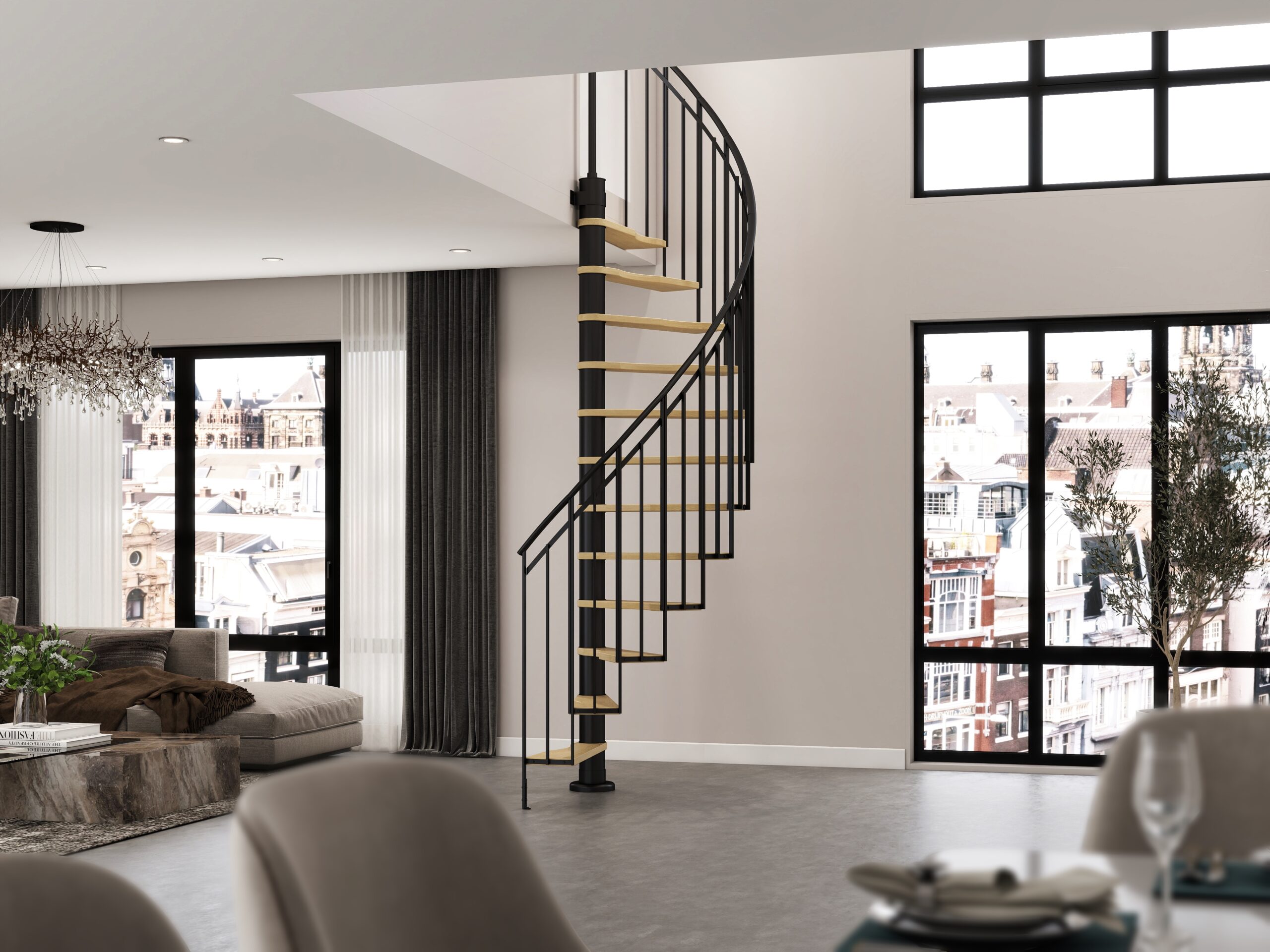 De ruimtebesparende spiltrap SIENA is een spiltrap met 12 treden. De trap bestaat uit een metalen spil en beuken treden. De trap wordt geleverd met een moderne leuning in dezelfde kleur als de spil. De treden zijn gemaakt van 30mm dik beukenhout en worden onbehandeld geleverd. In tegenstelling tot de meeste van onze spiltrappen kan deze trap niet in beide draairichtingen worden gemonteerd. Let dus bij het bestellen goed op dat je rechts of linksdraaiend besteld. Meer informatie vind u in de montagehandleiding.