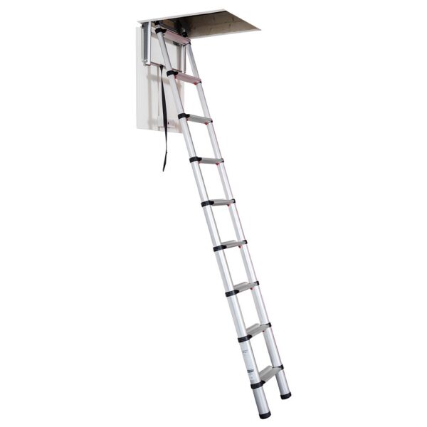 Telescopische vlizotrap, voor een veilige toegang tot de zolder. De vlizotrap STEP is gemaakt van hoogwaardige aluminium buizen, het luik is thermisch geïsoleerd met polystyreenHDF, en voorzien van een afdichting.